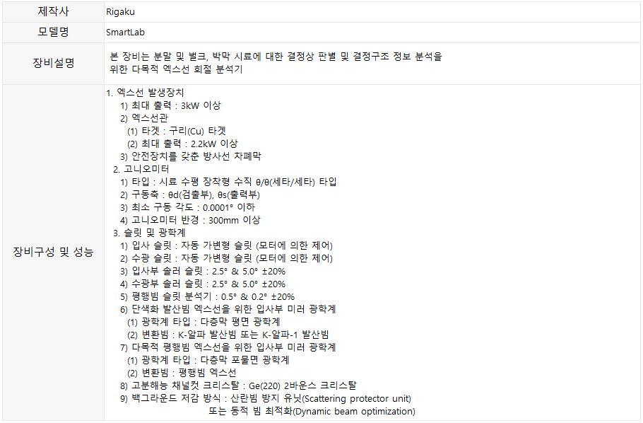 본 장비는 직접 사용이 불가하며, 장비 전문가를 통한 의뢰만 가능합니다.